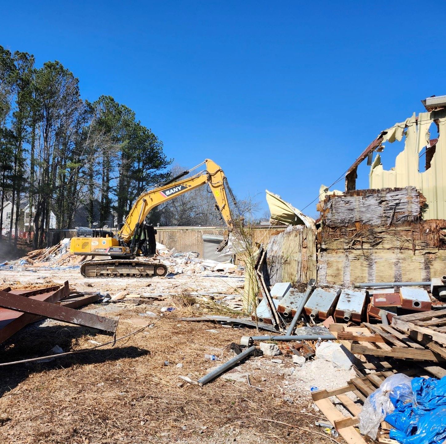 The required remediation due to asbestos in the metal warehouse buildings located at 4839 Railroad Avenue is complete, and demolition is underway. This portion of the project can be expected to last 2-3 weeks before site work begins.