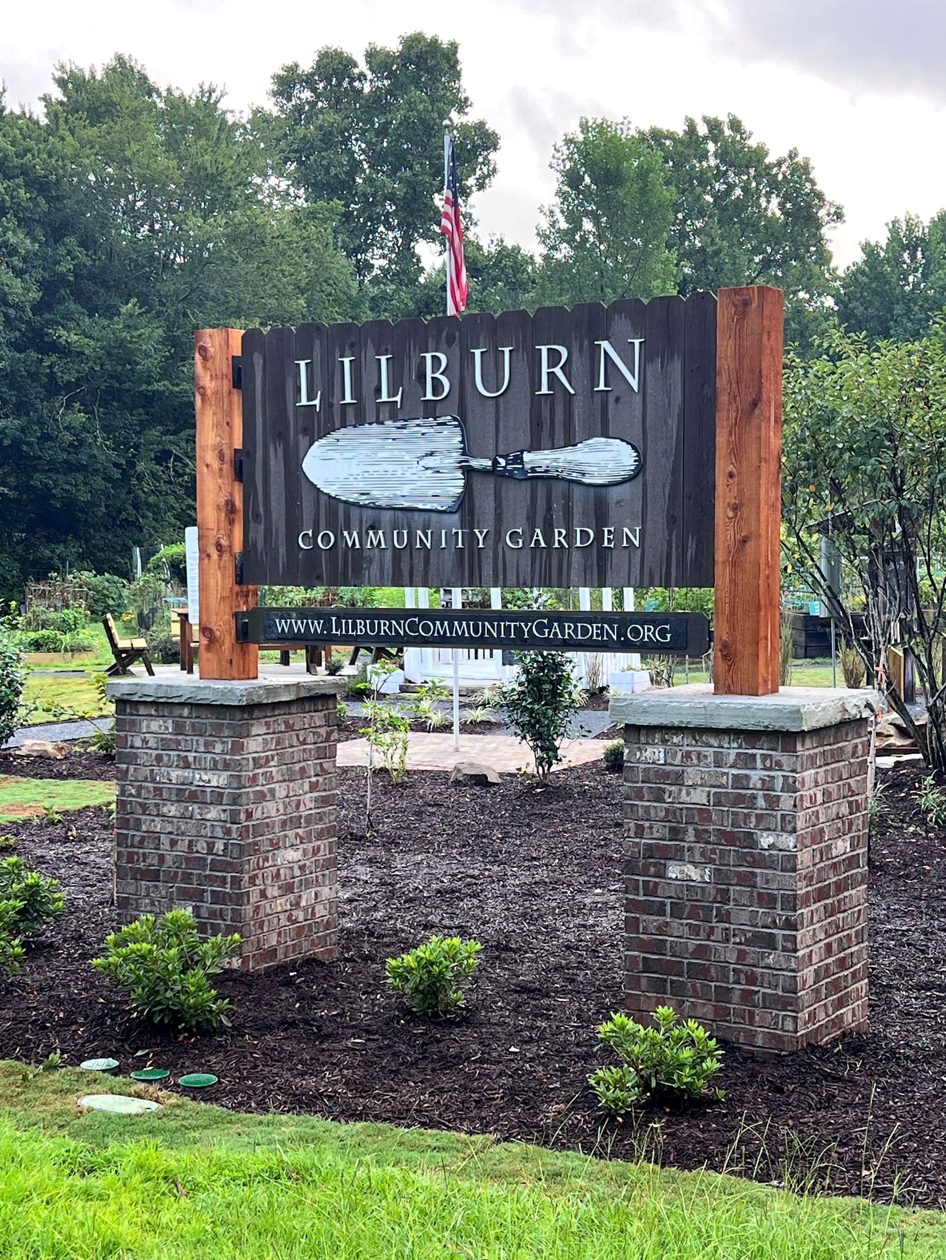 Big things are blooming at the Lilburn Community Garden! Thanks to a SPLOST-funded beautification project, the front entrance has been completely transformed with a charming brick and split rail fence, a new arbor for entry to the garden area, a repurposed structure for the original garden sign, native plants, fruit trees, and refreshed raised beds. Crews also added new pathways, pavers around the American flag, and upgrades to the gazebo and parking area. A shaded seating area with lighting and sail covers is coming soon!