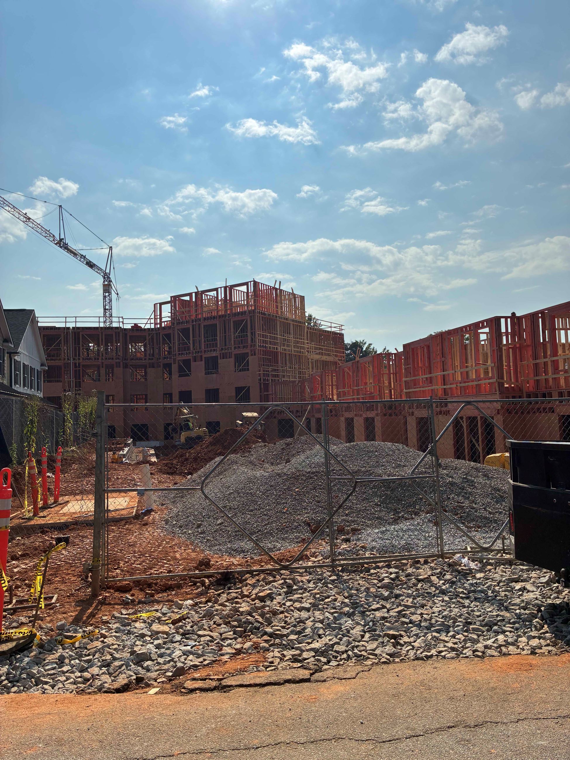 Erection of the Porchline parking deck structure is now complete! Crews will soon begin working on the interior ramp. Meanwhile, the Porchline multifamily project is well underway and progressing quickly.