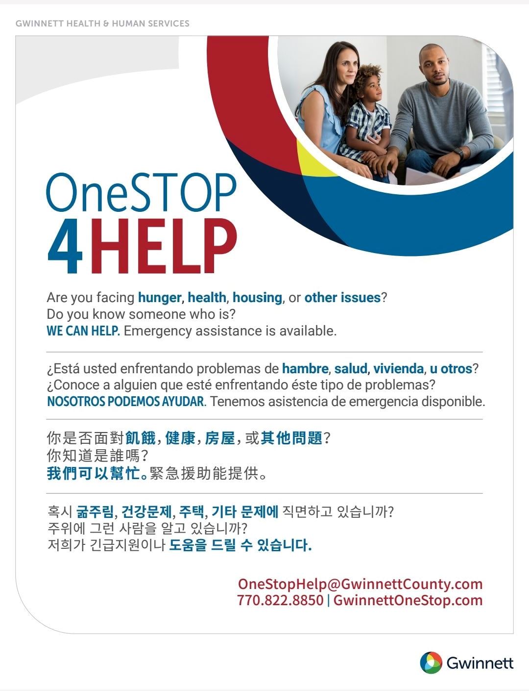 If you or someone you know is facing challenges with food, housing, healthcare, or other essential needs, Gwinnett County’s OneSTOP4HELP can connect you to local resources. Gwinnett County One Stop Services